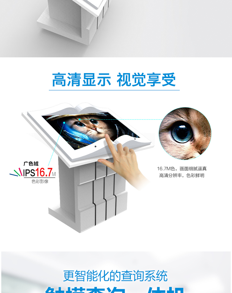 智慧翻書一體機采用三維數字技術制作,可以添加相應的廣告語言以及宣傳語言,大大地提高了產品的宣傳性。