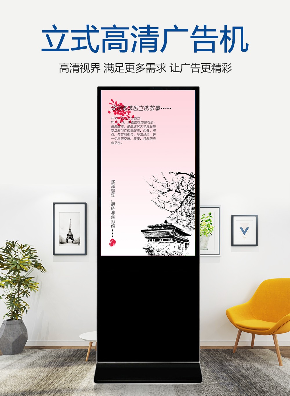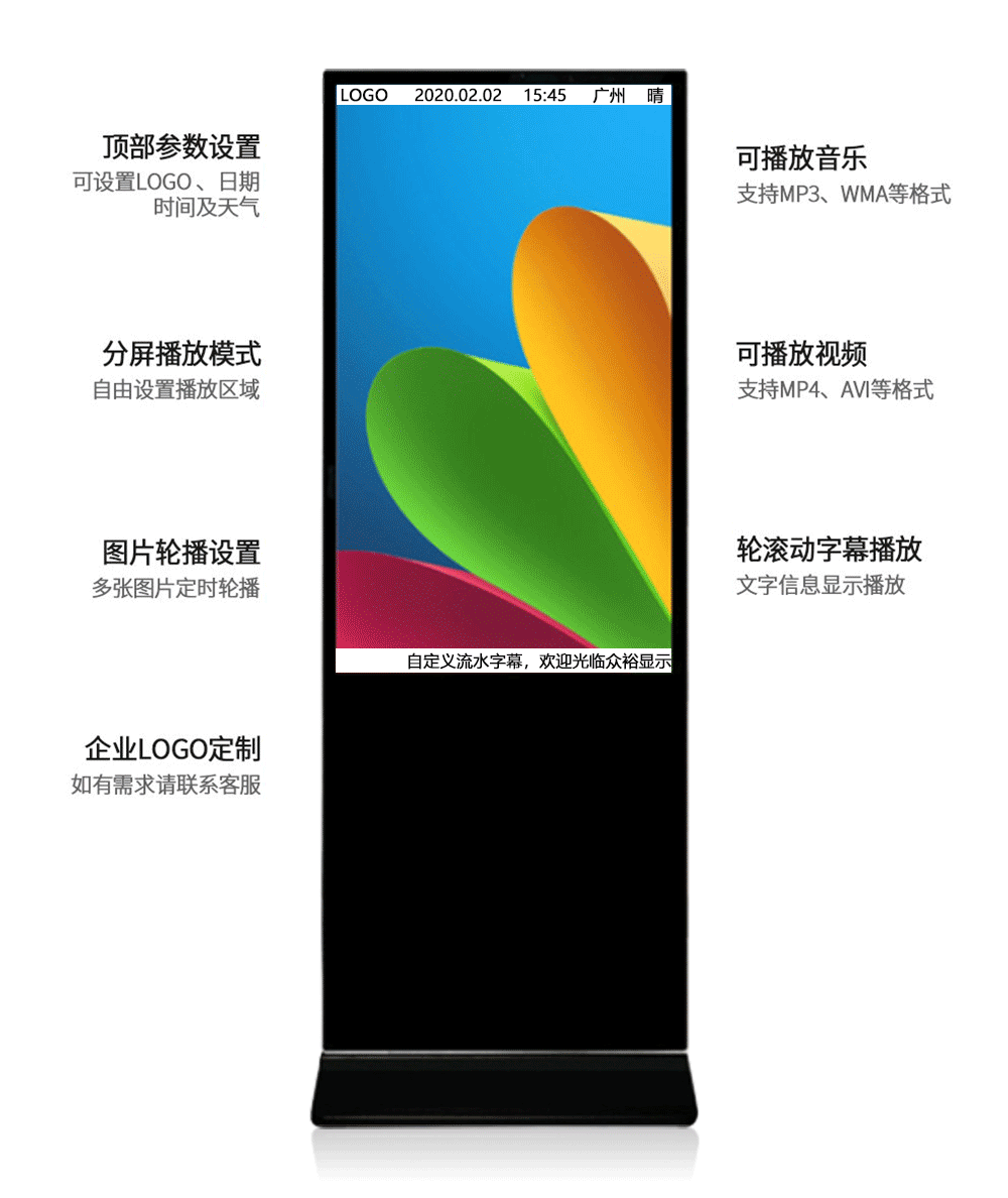 我們常見的廣告機有立式廣告機和壁掛式廣告機,以及臥式廣告機。在這幾種廣告機中,我們在很多地方都能看到的是立式廣告機。不管是在大商場,還是在活動現場,機場等地方。立式廣告機具有網絡化、實時性和多樣化的特點,無疑是時代的杰出代表。